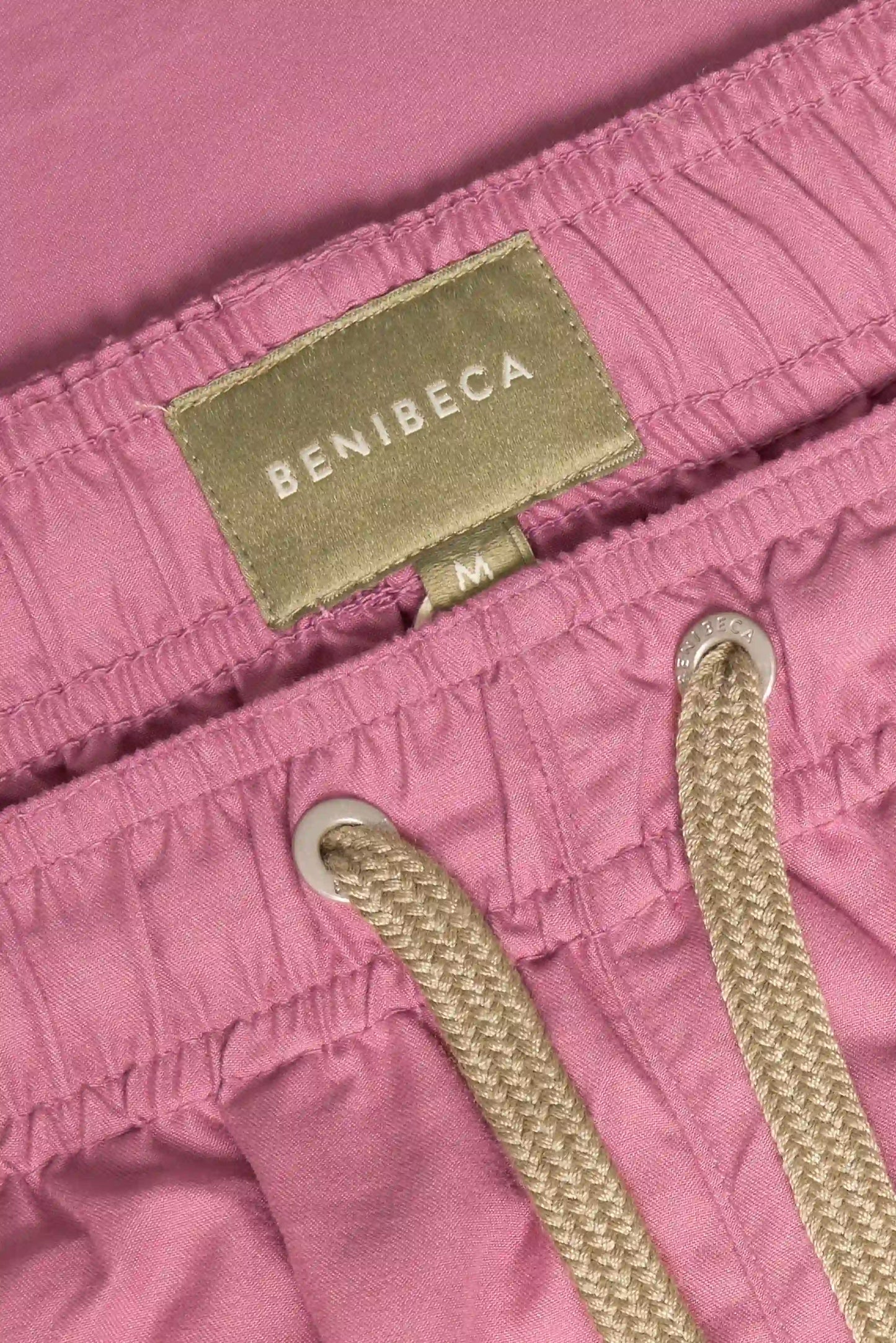 This classic mid-length short has become one of Benibeca's summer icons. With a contemporary regular fit, it is the ultimate expression of relaxed luxury. The swim shorts are made from plastic rescued from the ocean and transformed into recycled polyester fibers. This sustainable and technological fabric is unique for its lightness, strength, quick drying time, and the softness of our "peach skin".