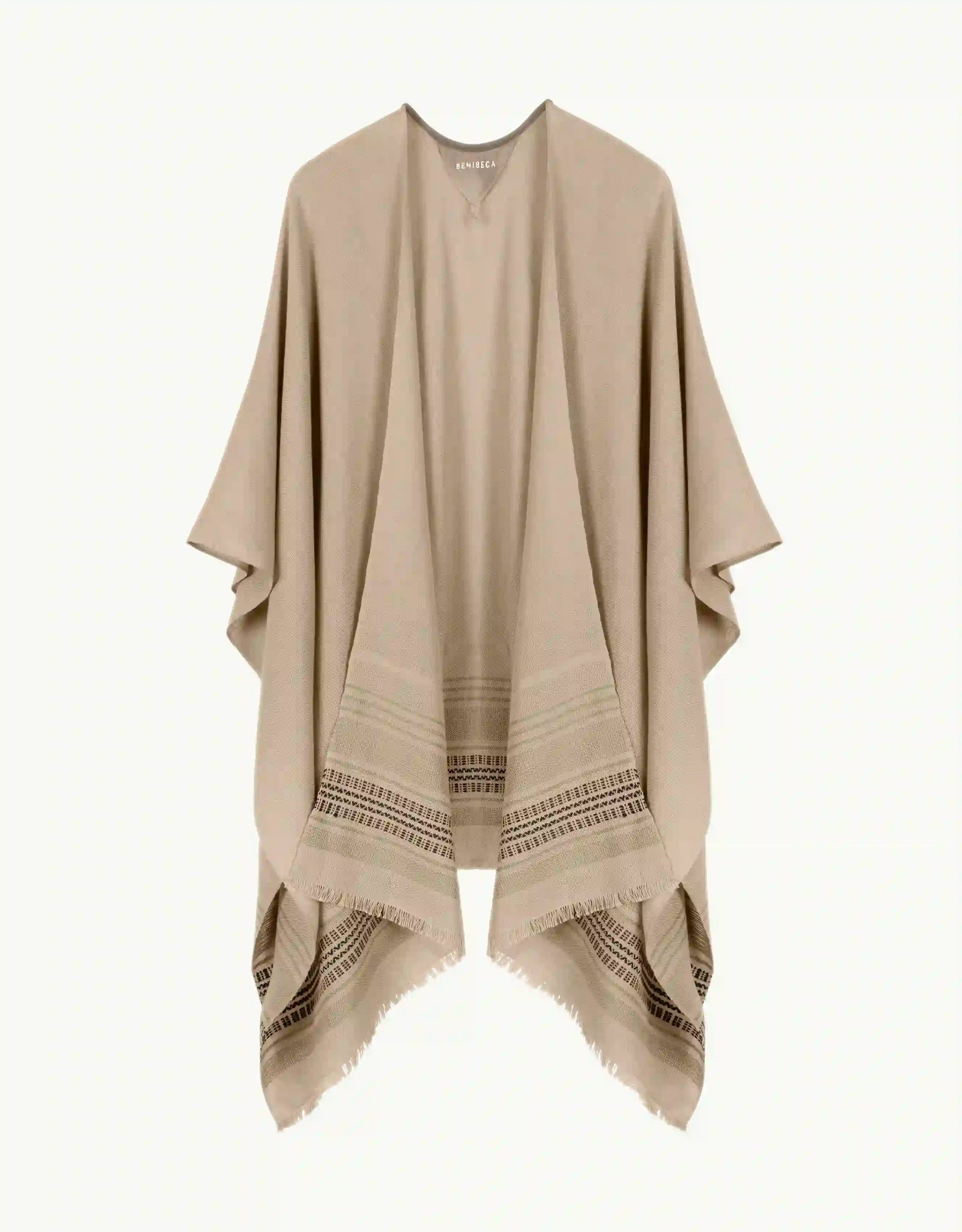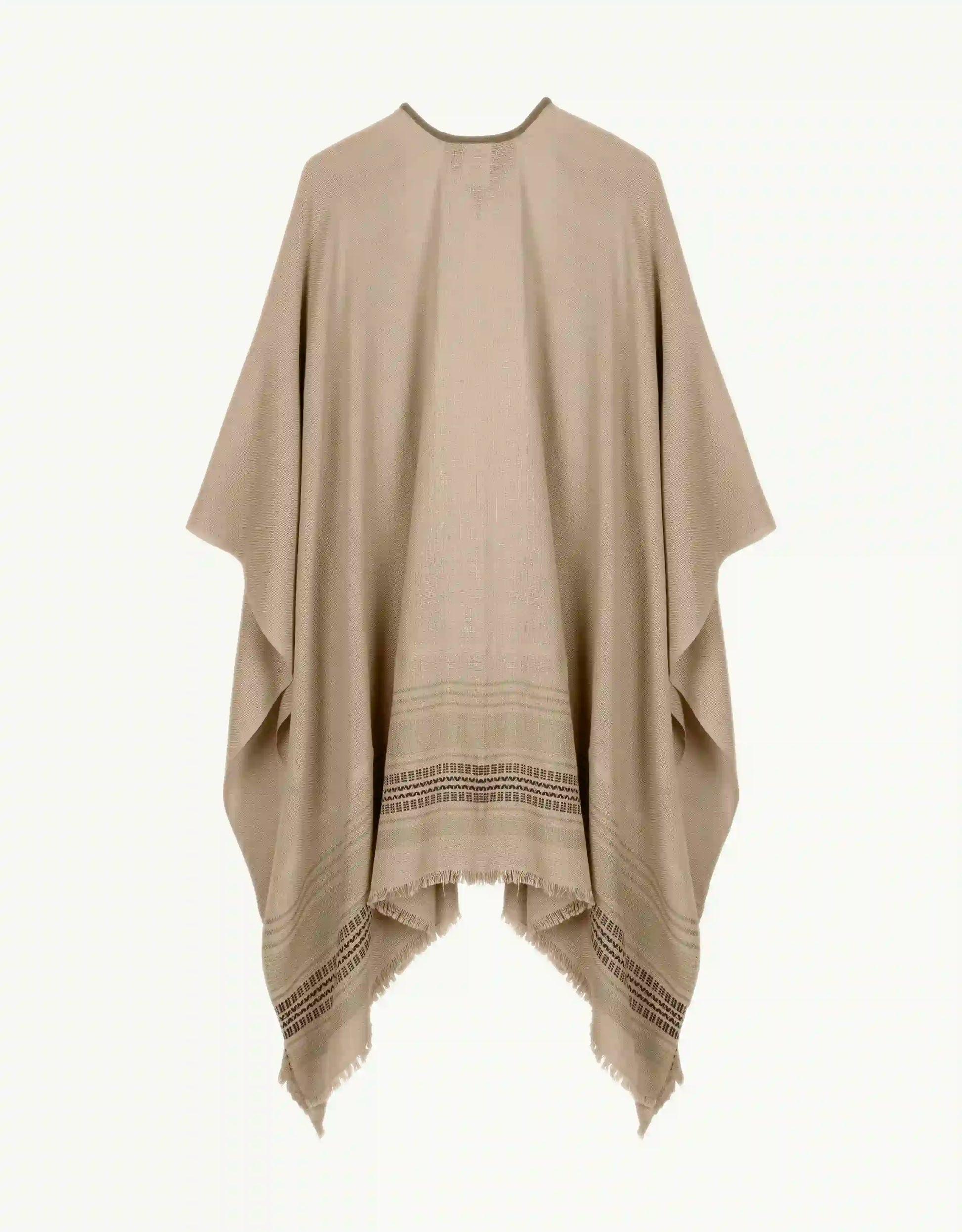 The most exquisite boho sophistication takes shape in this ruana handcrafted by artisans from the town of Hualhuas. This garment captures that je ne sais quoi of those who take elegance to the next level. The piece hugs the body with sublime lightness and softness, thanks to the high quality of the Pima yarn. A new symbol of summer luxury designed with versatility in mind, to dress with natural sophistication for beach getaways or evenings at the seasonal place to be.