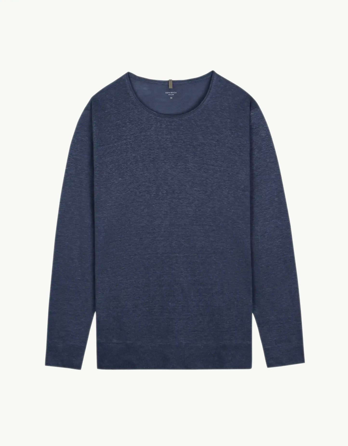 Make your summer wardrobe more versatile and breathable with our best-selling pure linen crew neck sweatshirts. These super-popular styles are wonderfully lightweight with a semi-opaque knit and a bumpy, uneven, slubby texture. Employing a super-soft, lightweight fabric and a loose silhouette, these linen sweatshirts have a luxurious feel and superb fit. Fresh, flexible, and beach-ready, they can be worn with any of our pants or swim shorts, combining beautifully with all our natural organic colour palettes.