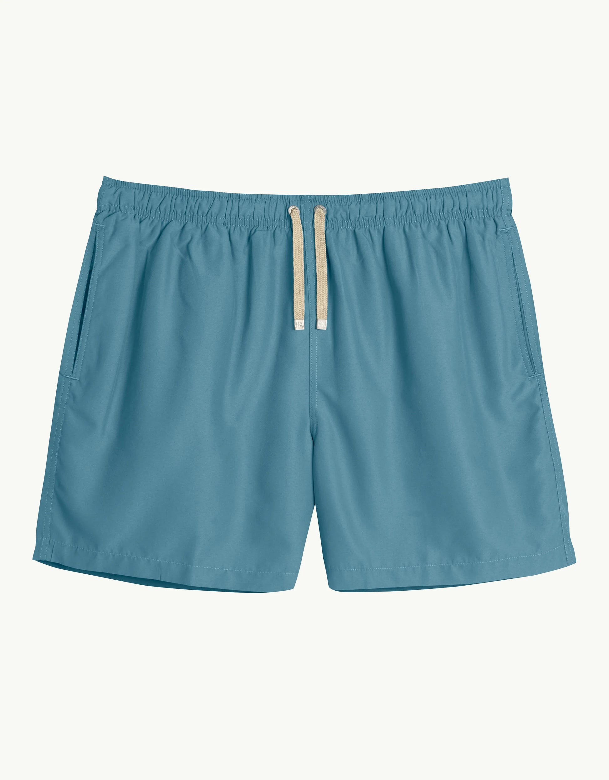 This classic mid-length short has become one of Benibeca's summer icons. With a contemporary regular fit, it is the ultimate expression of relaxed luxury. The swim shorts are made from plastic rescued from the ocean and transformed into recycled polyester fibers. This sustainable and technological fabric is unique for its lightness, strength, quick drying time, and the softness of our "peach skin".