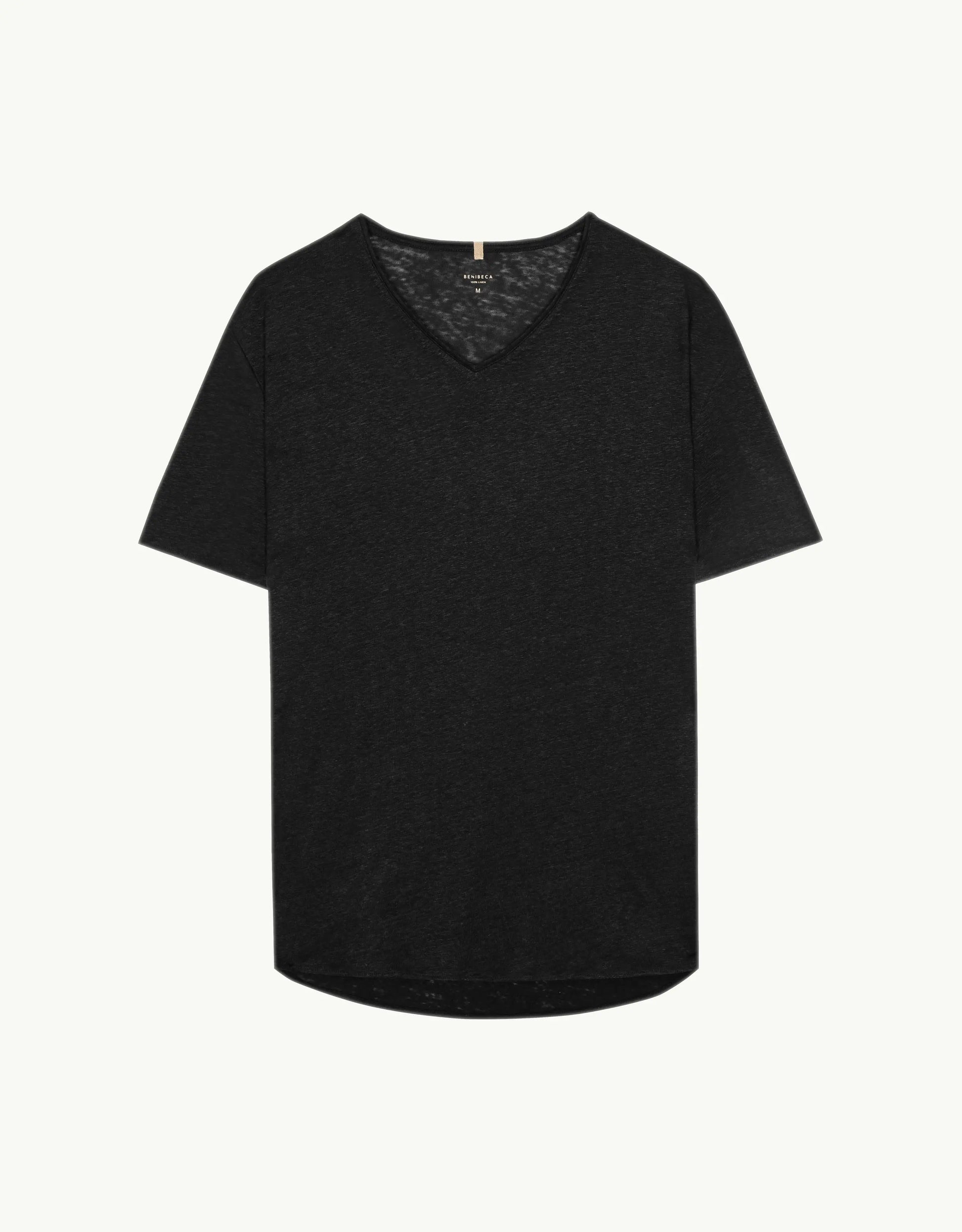 V-NECK LINEN NERO