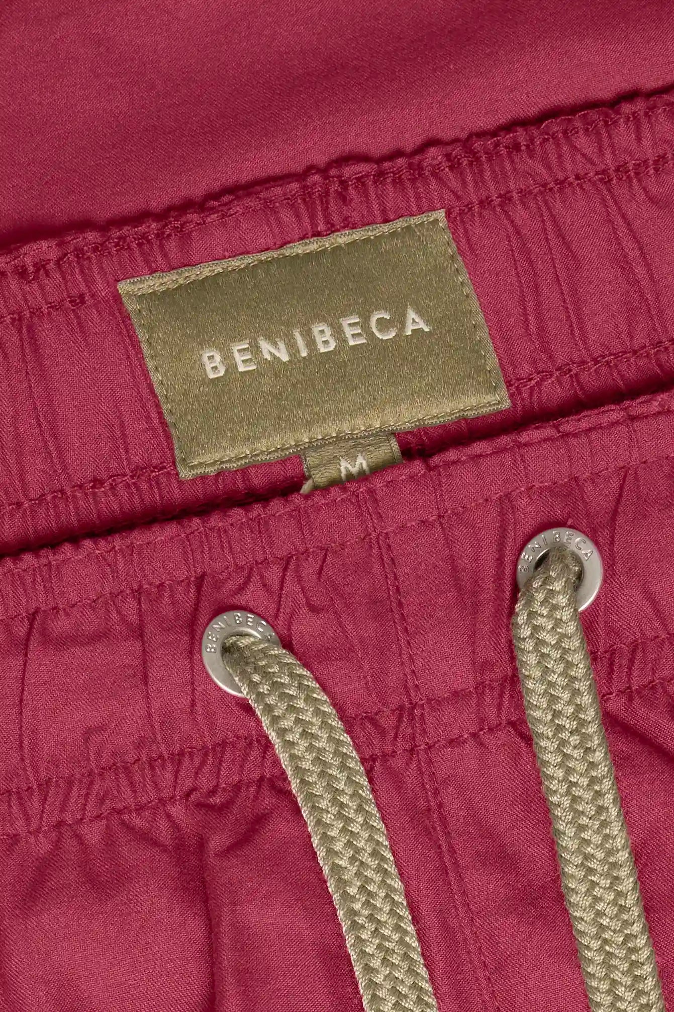 This classic mid-length short has become one of Benibeca's summer icons. With a contemporary regular fit, it is the ultimate expression of relaxed luxury. The swim shorts are made from plastic rescued from the ocean and transformed into recycled polyester fibers. This sustainable and technological fabric is unique for its lightness, strength, quick drying time, and the softness of our "peach skin".