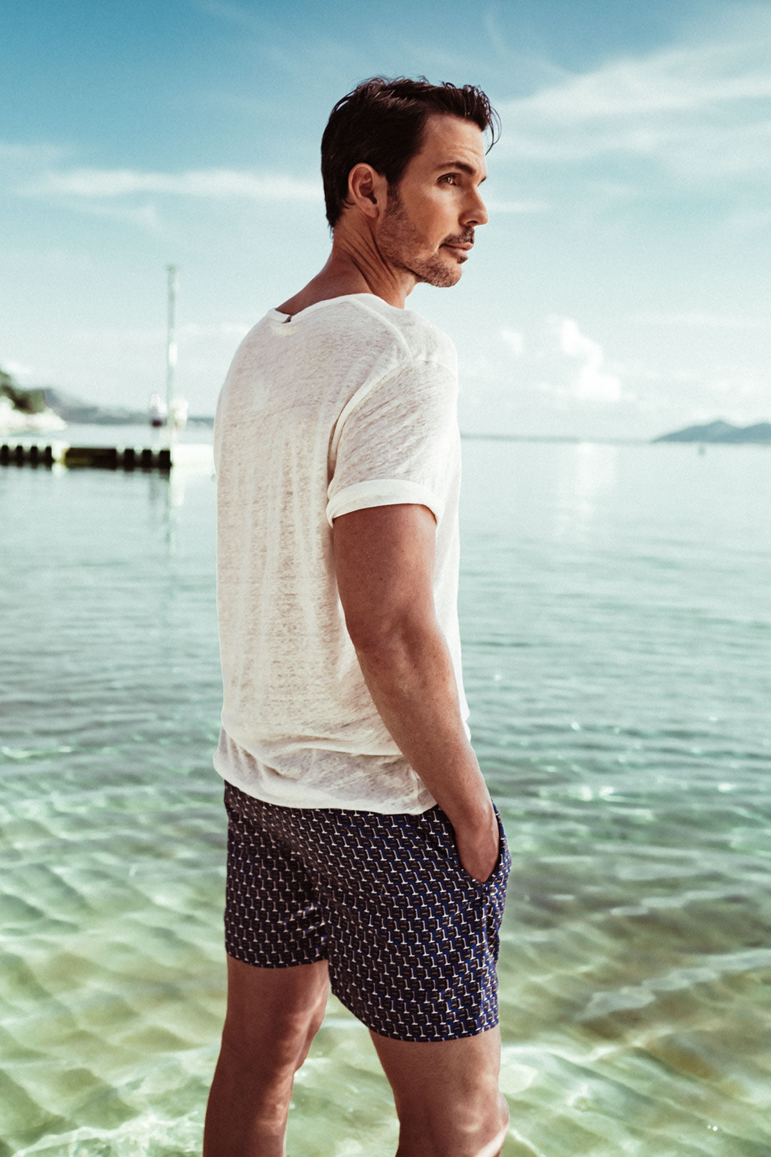 Swim shorts, linen and Asian ramie — the textures of summer.