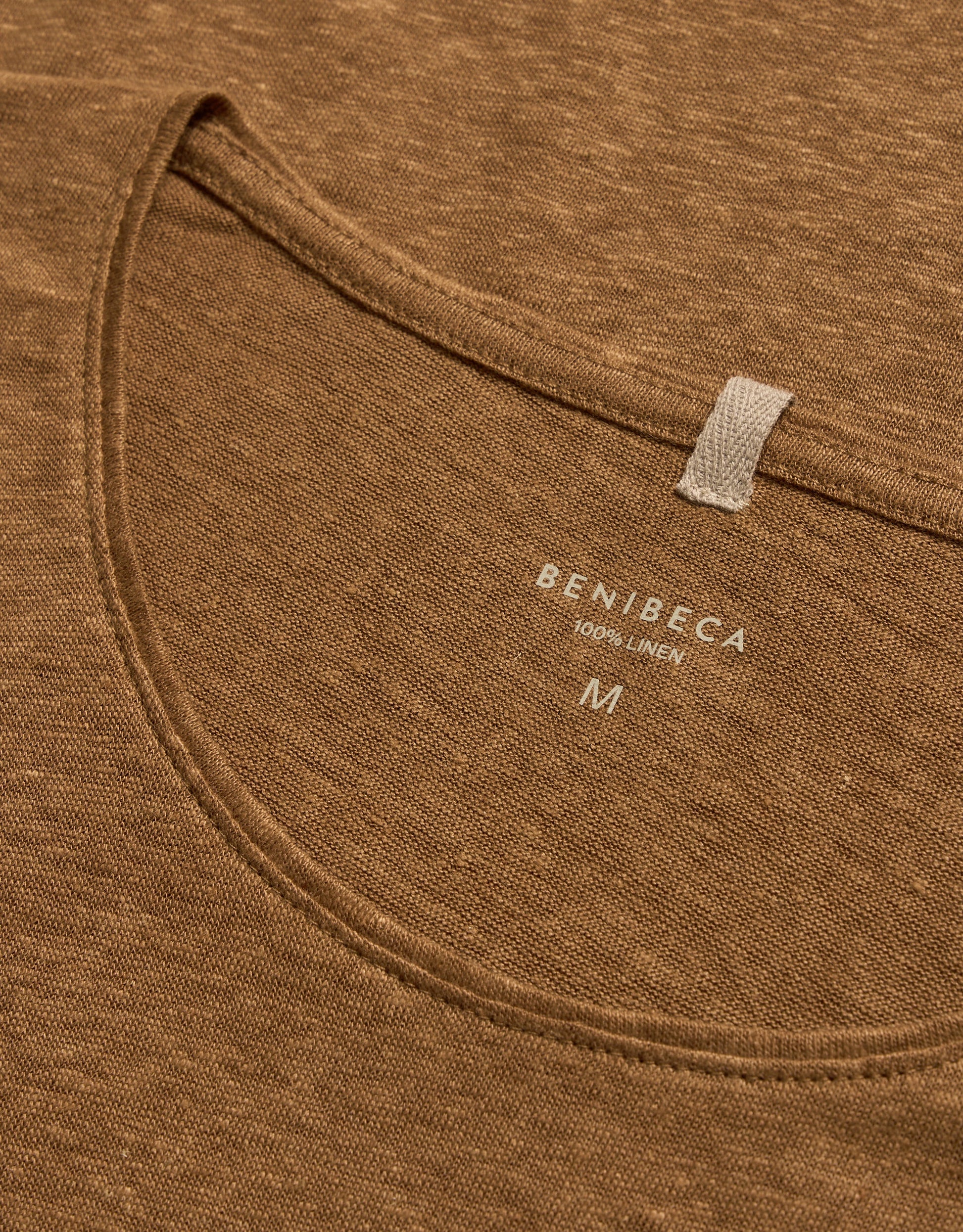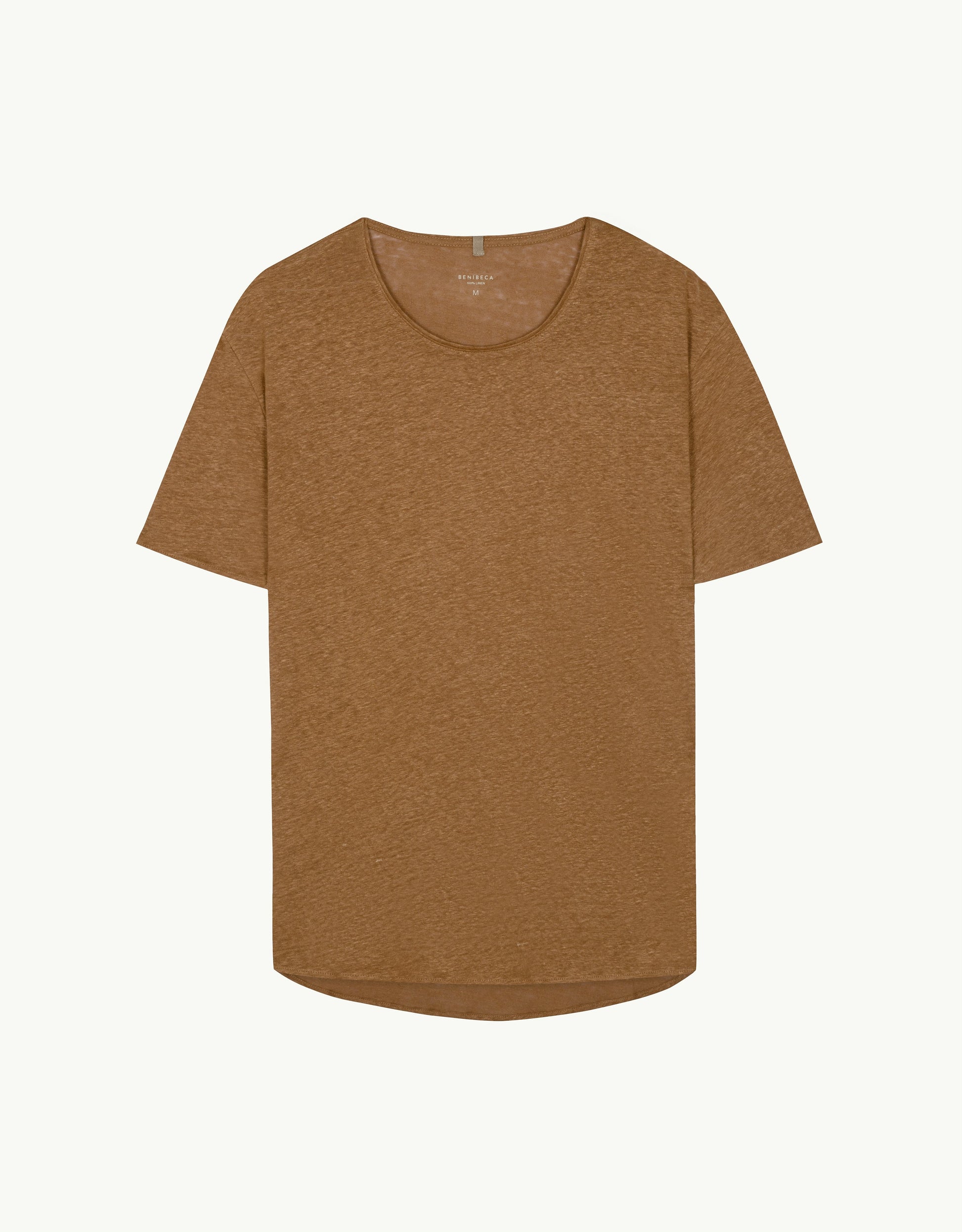 Layer up your holiday summer wardrobe with our versatile and breathable pure linen V-neck T-shirts with short sleeves. These best-selling styles are wonderfully lightweight with a semi-opaque knit and a bumpy, uneven, slubby texture. Employing a super-soft, lightweight fabric and loose silhouette, these linen tees have a luxurious feel and superb fit. Fresh, flexible, and beach-ready, they can be worn with any of our pants or swim shorts, combining beautifully with all our natural organic colour palettes.